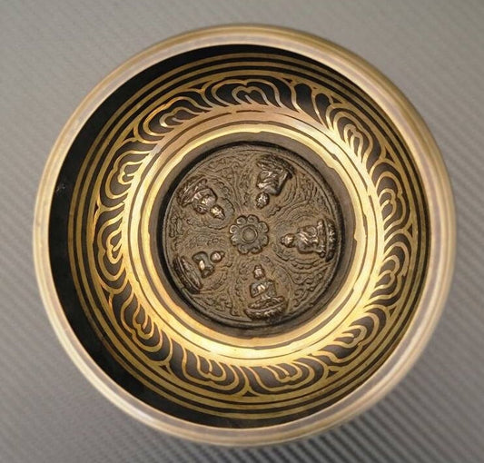 Namaste Hand etched with Om Mani Padme Hum mantra Singing Bowl with Mallet