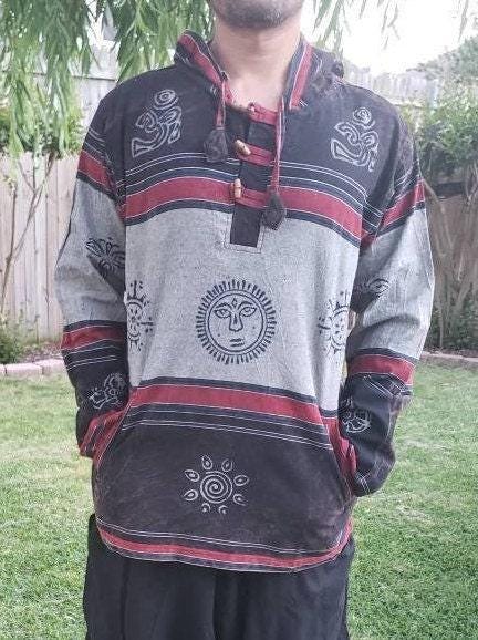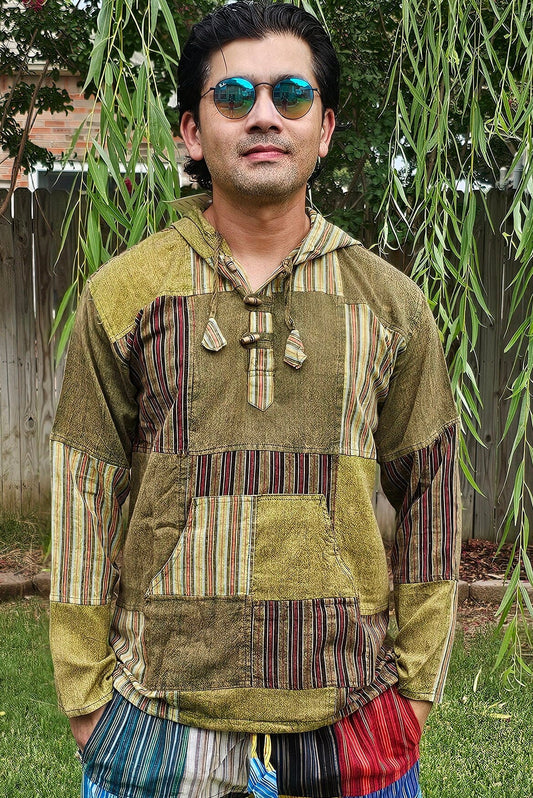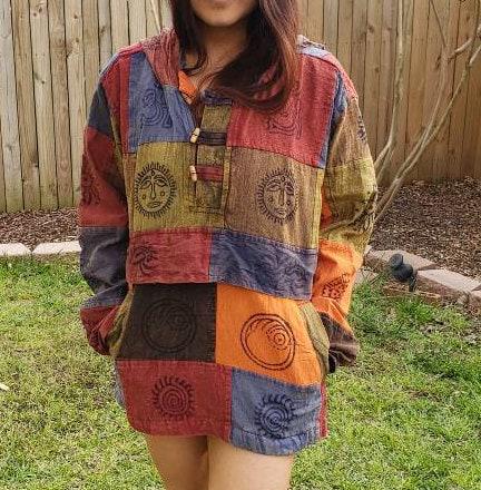 Namaste Patchlined Unisex Handmade Organic Eco-Friendly Nepalese Festival Colorful Fashionable Light Pullover Hoodie