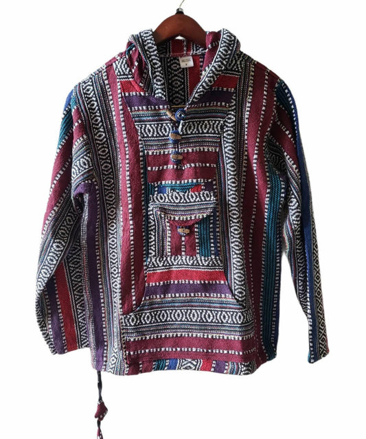 Namaste redblue hippie unisex puncho retro multicolored baja nepalese pullover limited edition handmade fashionable gheri warm pullover