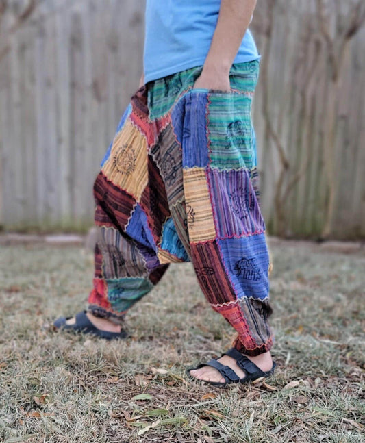 Namaste fashionable unisex multicolor handmade hippie patchwork dyed cotton baggy boho comfy festival yoga harem pants trouser
