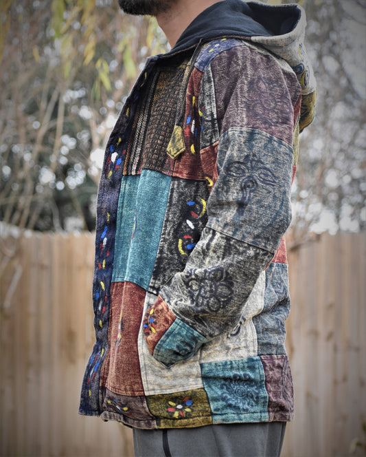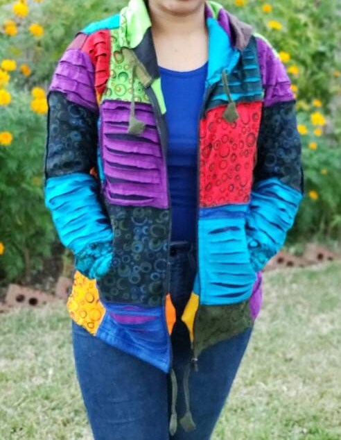 Namaste Printed Women's Fashionable Cutting Design Multicolor Hippie Cotton Hoodie Handmade Jacket
