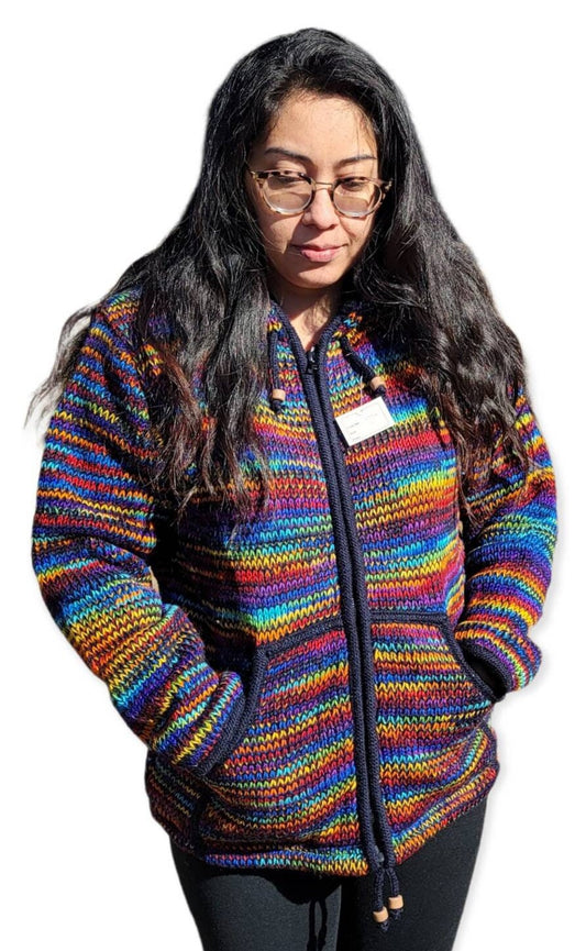Aztec Styled Handmade Fleece Lined Winter/ Autumn/spring Unisex Colorful Vibrant Organic Woolen Double Layered Jacket.