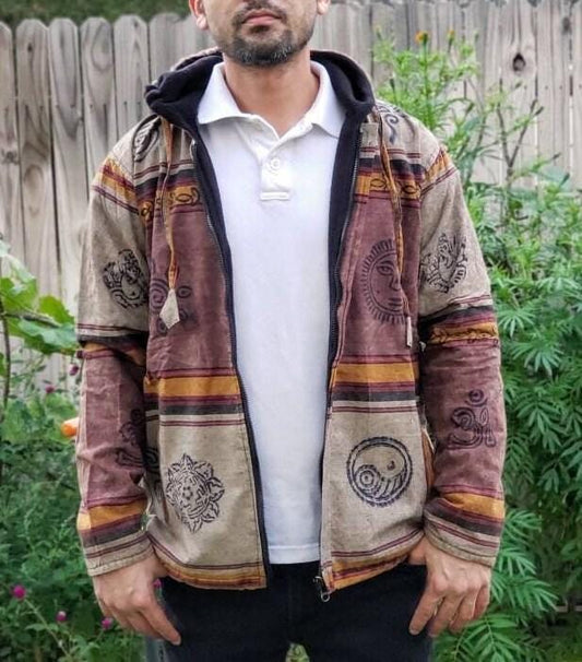 Namaste printed fashionable unisex multicolor fleece lined cotton hoodie handmade double layered jacket
