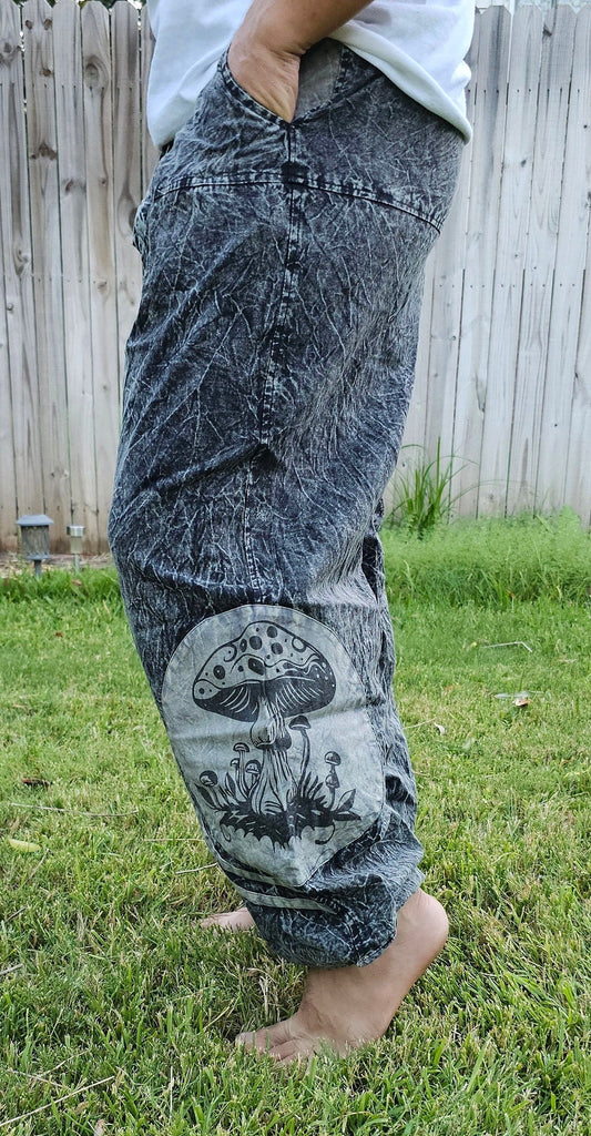 Namaste Mushroom Print Stonewashed Fashionable Unisex Multicolor Handmade Colorful Cotton Nepalese Trouser Pant
