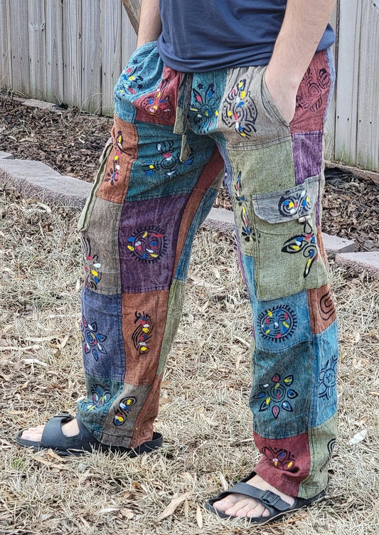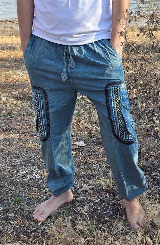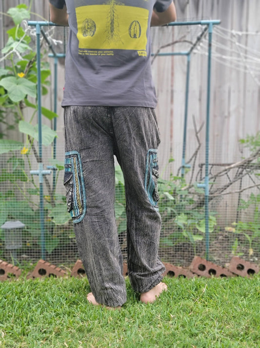 Handmade unisex stonewashed boho reggae pant cargo trouser