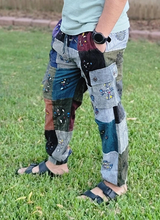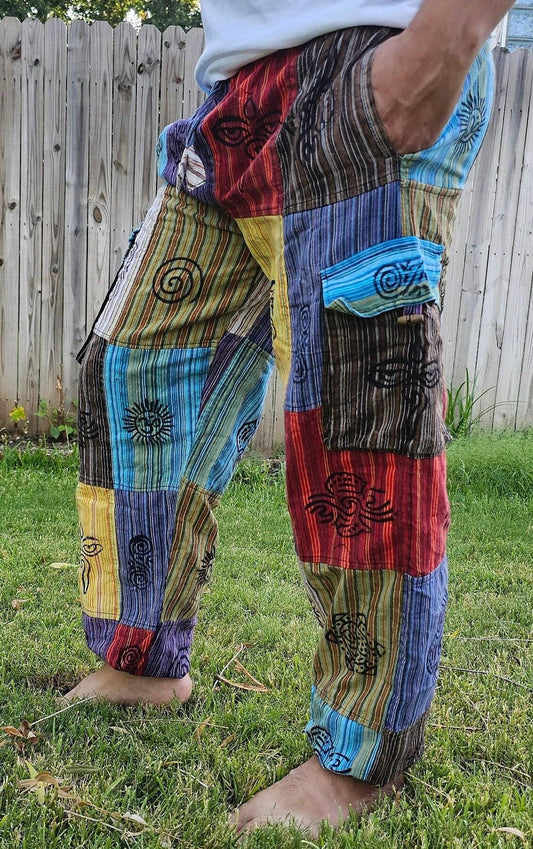 Namaste bohemian unisex reggae multicolor handmade hippie patchwork colorful cotton trouser.